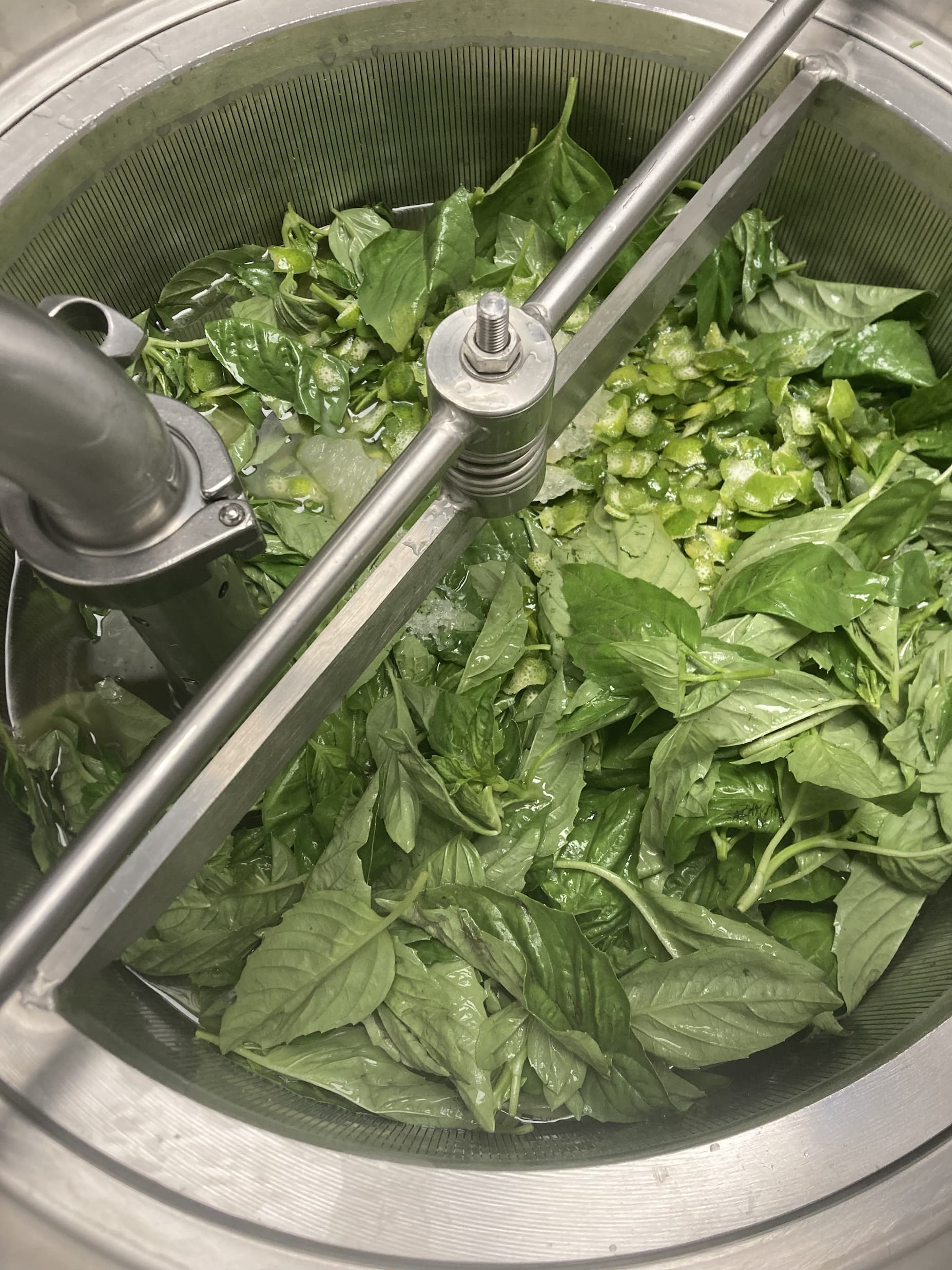Spinach, baby kale, green onions, cilantro, cucumbers, romaine, red oak lettuce, sweet peppers, tomatoes.